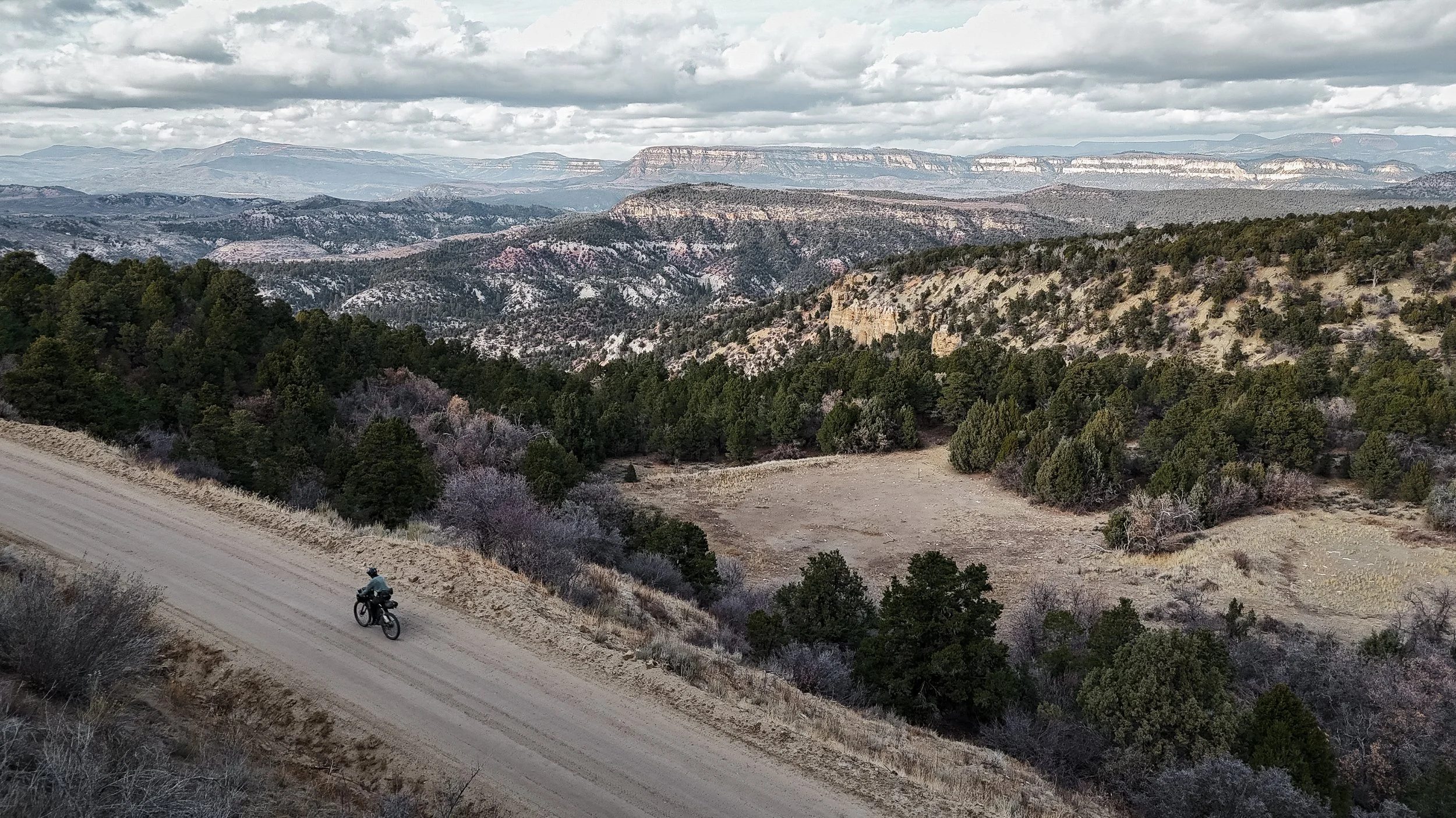 Technical (6/10): The route is primarily comprised of dirt roads, doubletrack, and gravel. Technical difficulty comes in the form of rough tracks, slickrock, occasional deep sand, and potentially snow/ice, depending on the season. After heavy rain, peanut butter mud can be a major issue, making progress practically impossible, which may require some rerouting.